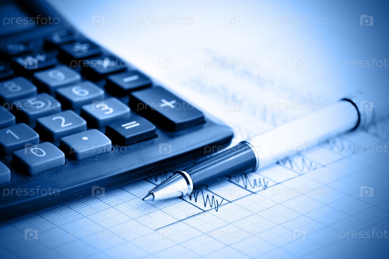 Шариковая ручка и калькулятор на листе с диаграммой