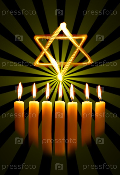 Менора со свечами и звезда Давида на темном фоне