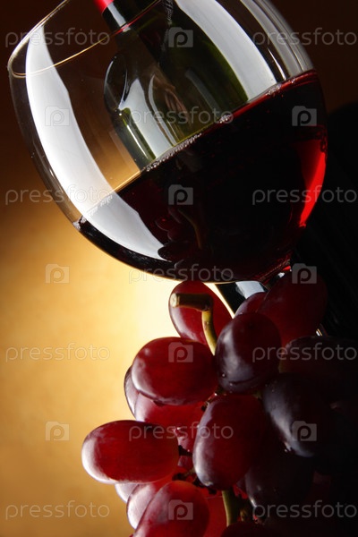 Натюрморт с красным вином и гроздью винограда