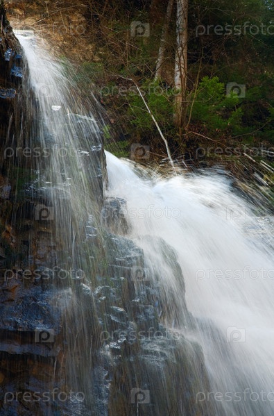 Высокогорный водопад в карпатском лесу