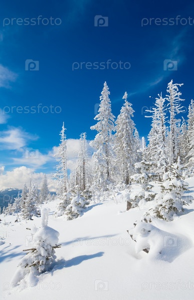 Заснеженные ели на склоне горы Кукол в Карпатах
