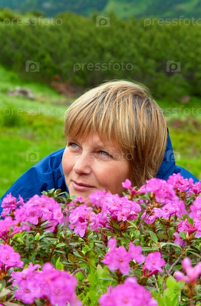 Женщина в цветах рододендрона
