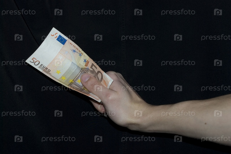 Рука с номиналом на черном фоне