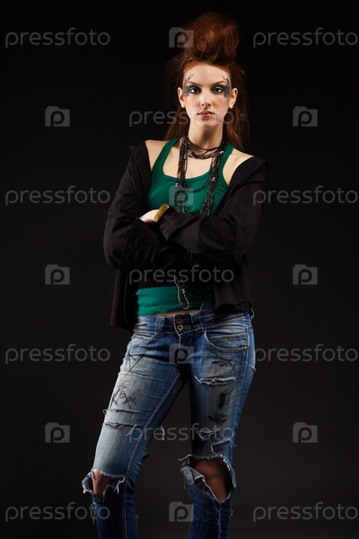 Рыжеволосая девушка-панк на черном фоне