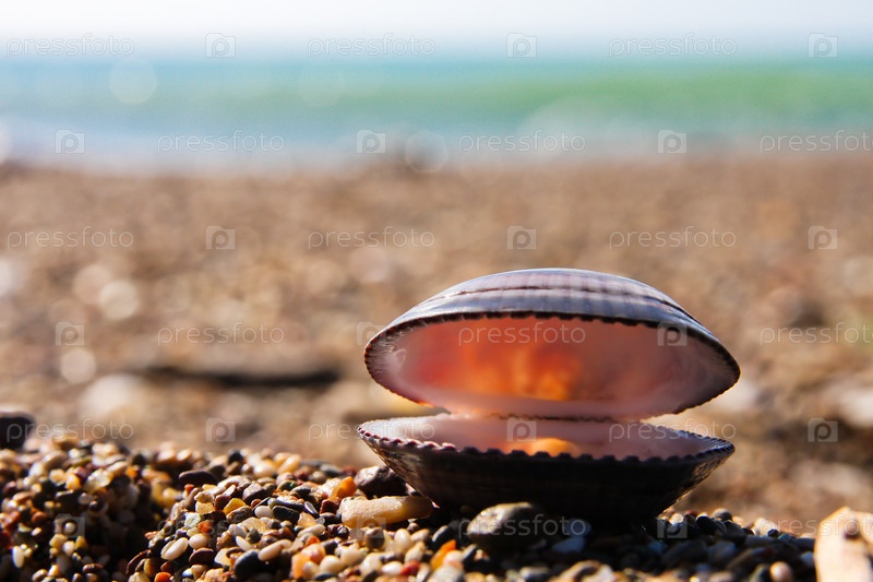 Красивая ракушка на берегу
