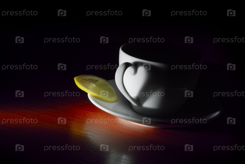Белая чашка на блюдце в темноте