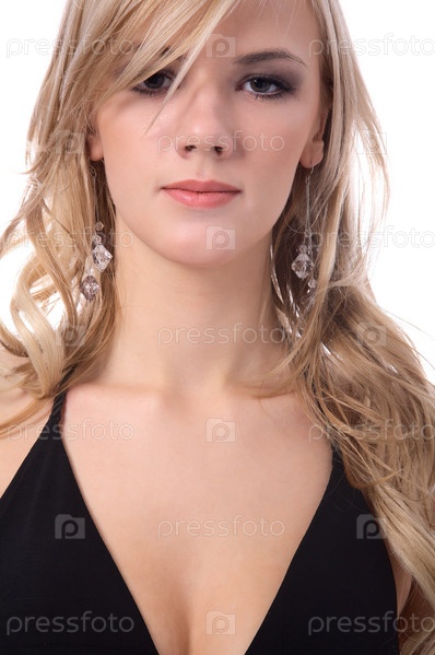 Портрет молодой блондинки на белом фоне