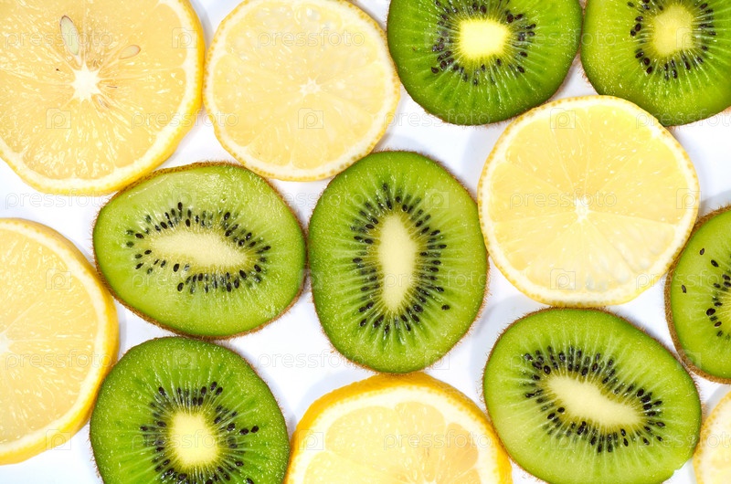 Спелые ломтики лимона и киви