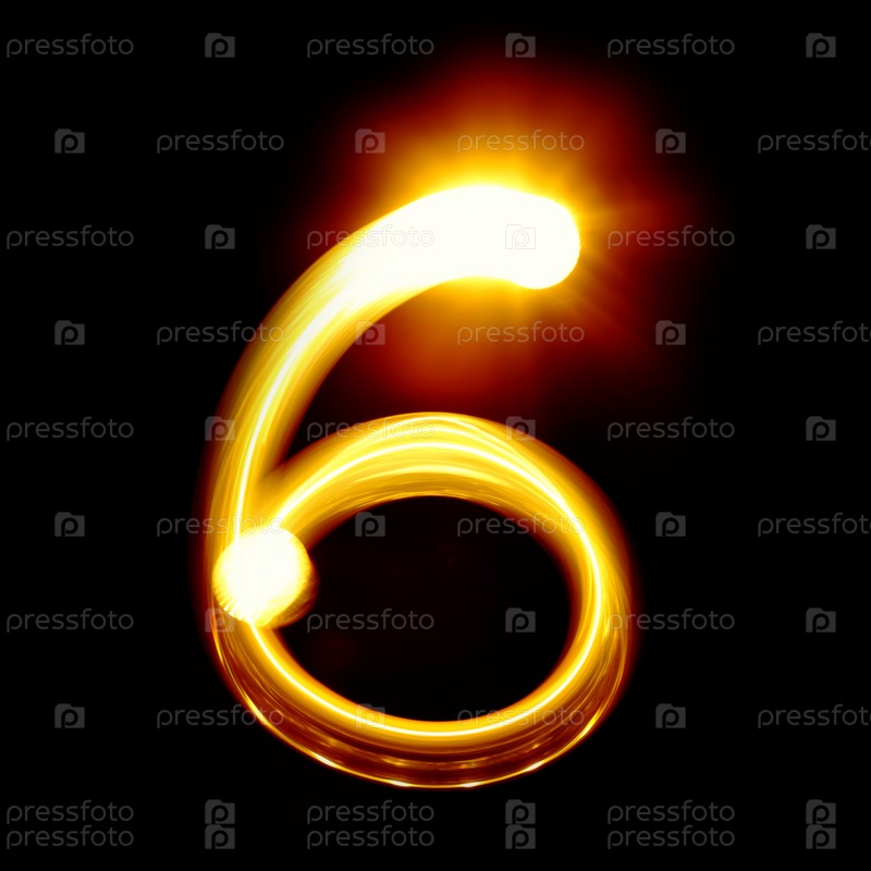Светящаяся цифра "шесть" на черном фоне