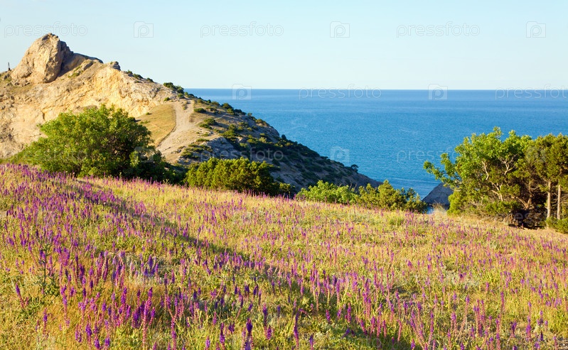 Фиолетовые цветы на побережье Черного моря в горно-лесном заповеднике "Новый Свет"