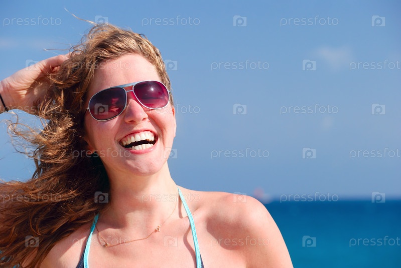 Радостная женщина на фоне моря