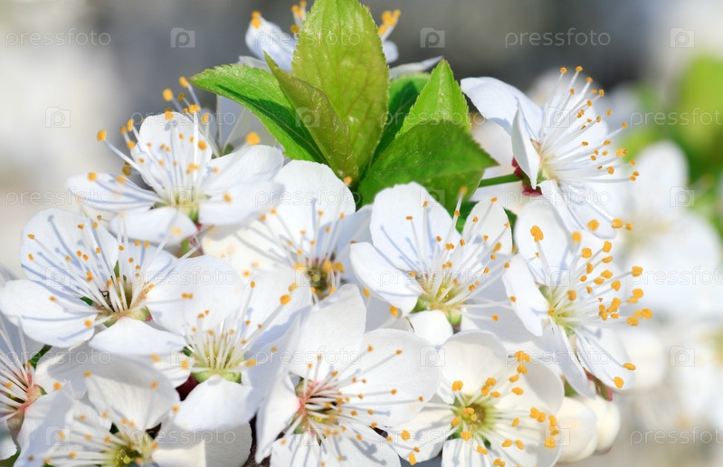 Белые цветы на ветке китайской вишни