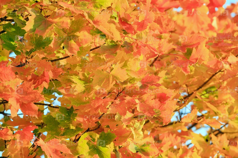 Осенние листья клена на дереве крупным планом