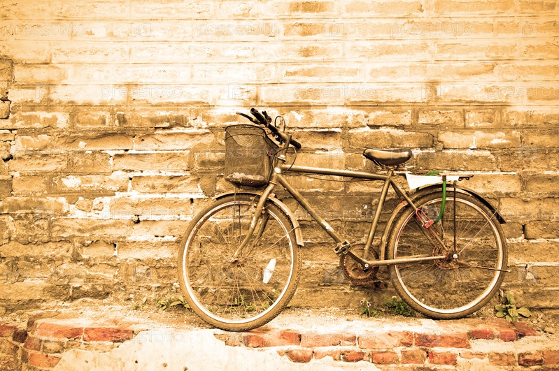 Старый велосипед у кирпичной стены
