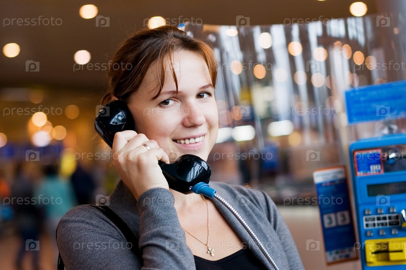 Девушка разговаривает по телефону в аэропорту