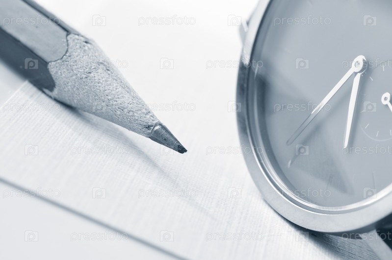 Часы и карандаш, крупный план