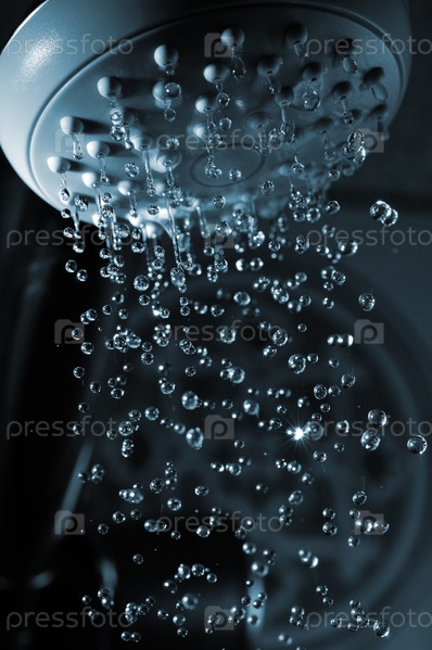 Включенный душ на темном фоне