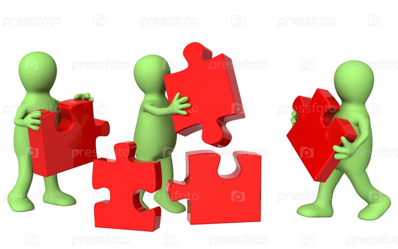 Три человечка с кусочками пазла