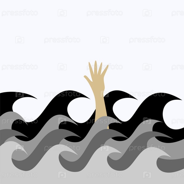 Рука тонущего человека видна из морских волн