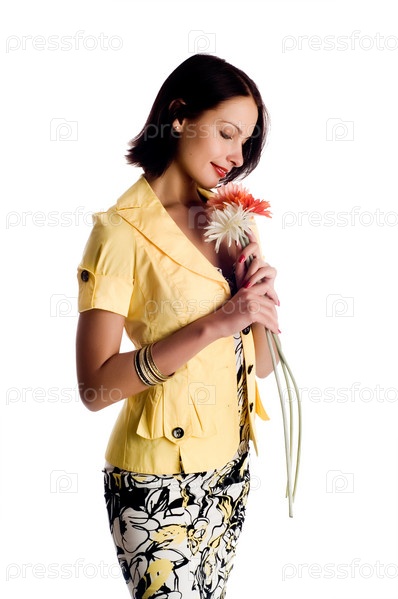 Студийный портрет красивой сексуальной молодой женщины с цветом, изолированной на белом фоне