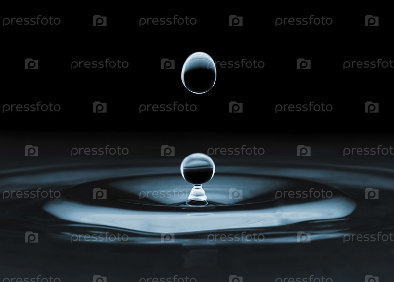 Капли, падающие в воду, темный фон