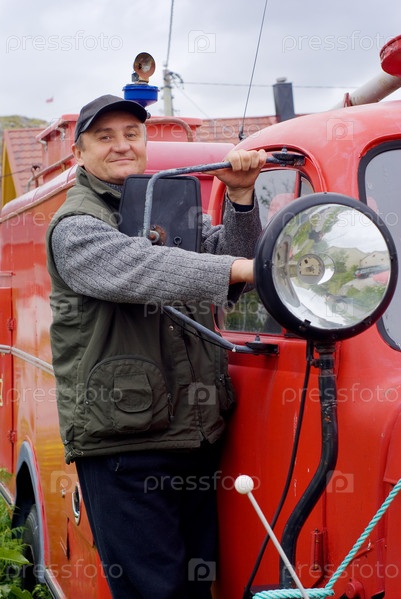 Мужчина у пожарной машины