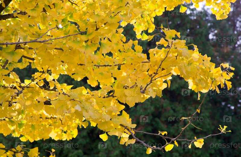 Желтая листва дерева динго в осеннем парке