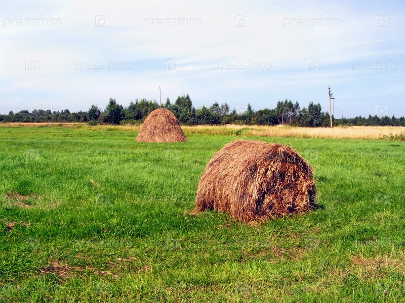 Стога сена на зеленом лугу