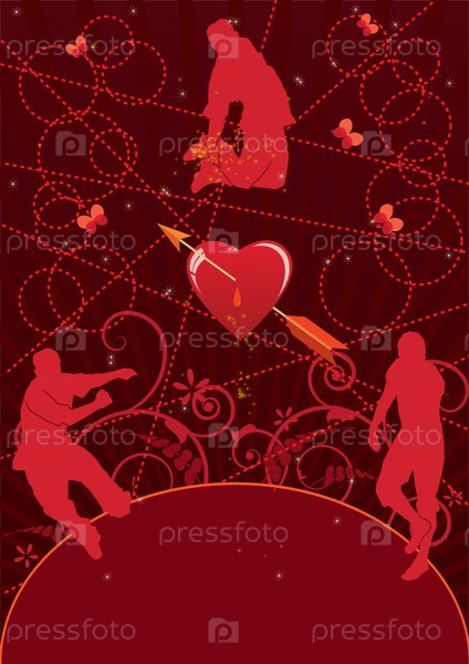 Фон ко дню Святого Валентина с силуэтами танцующих людей