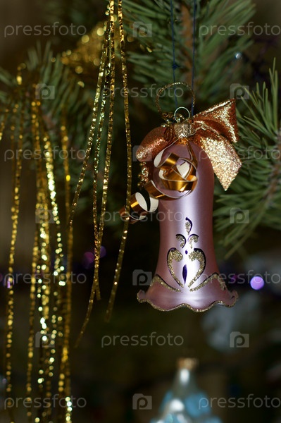 Новогодний колокольчик на еловой ветке
