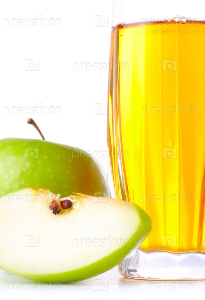 Стакан свежевыжатого сока и зеленые яблоки