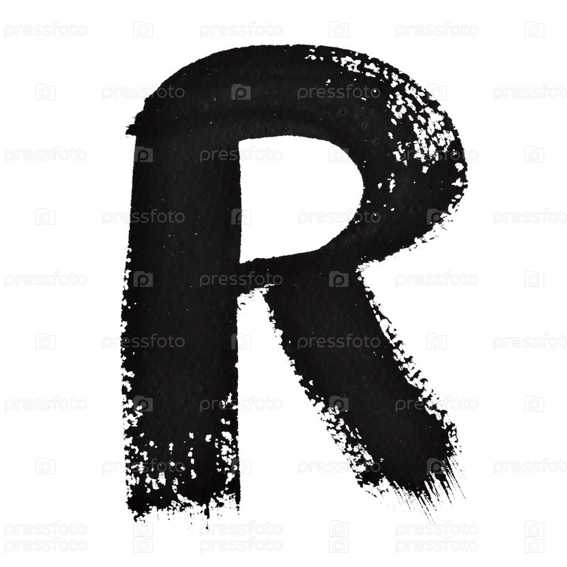 Нарисованная черной краской буква 'R', белый фон