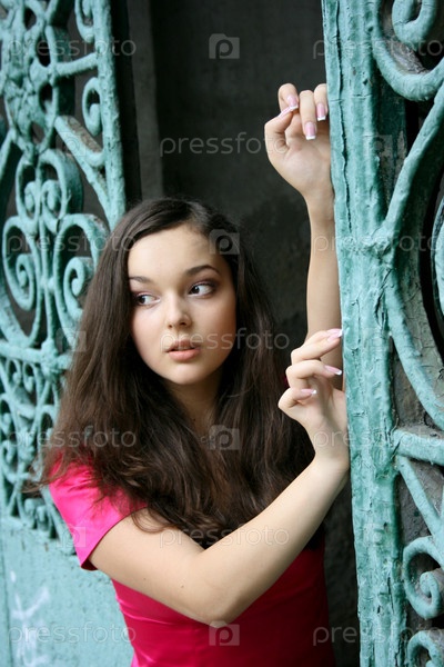 Молодая девушка у железных ворот