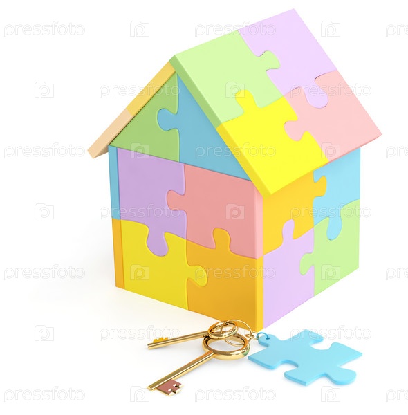 Домик из разноцветных кусочков пазла