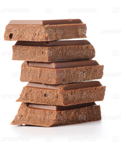 Кусочки шоколада на белом фоне