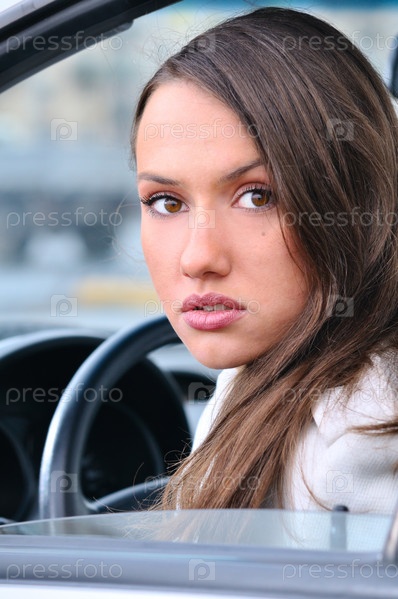 Девушка выглядывает из окна автомобиля