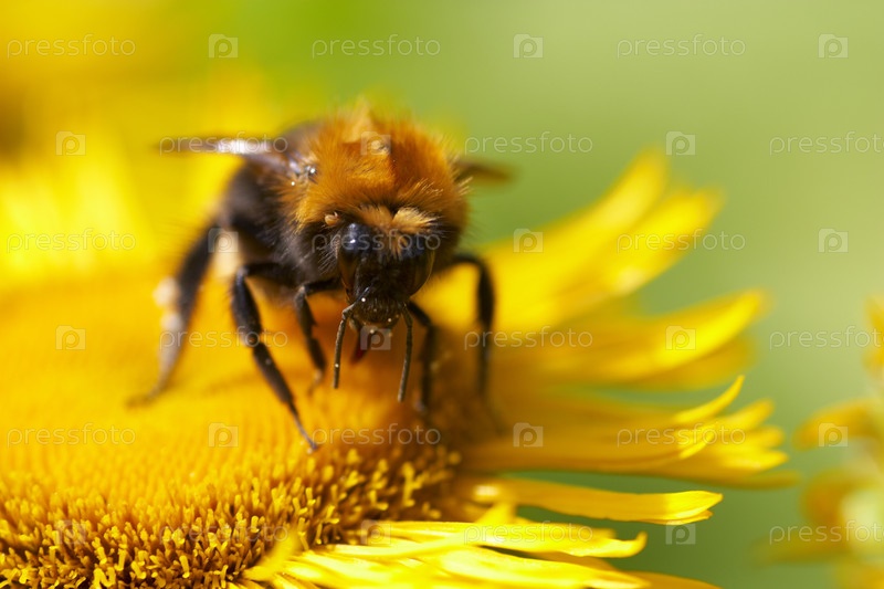 Шмель собирает нектар на цветке