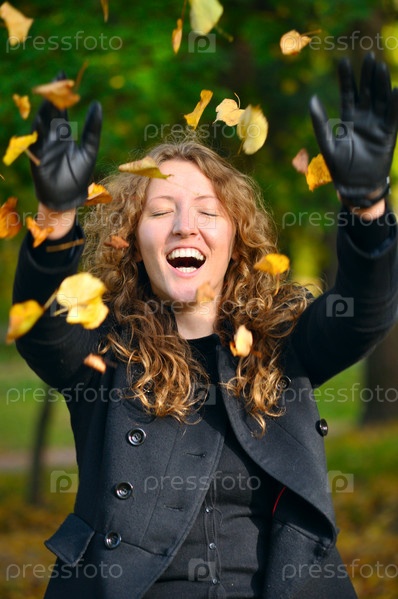 Счастливая женщина в парке