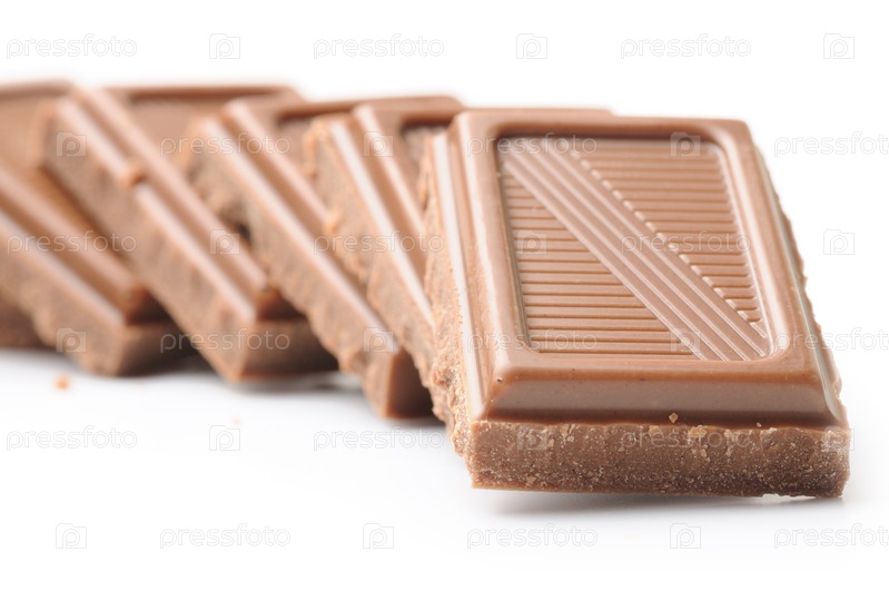 Кусочки шоколада на белом фоне