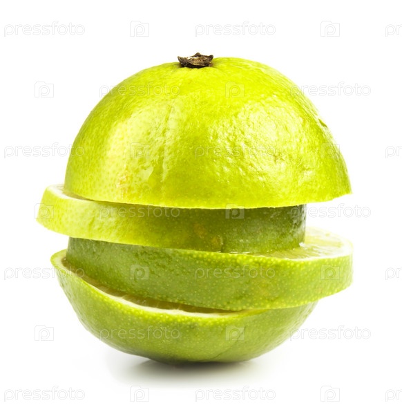 Зеленый спелый лайм, порезанный на дольки