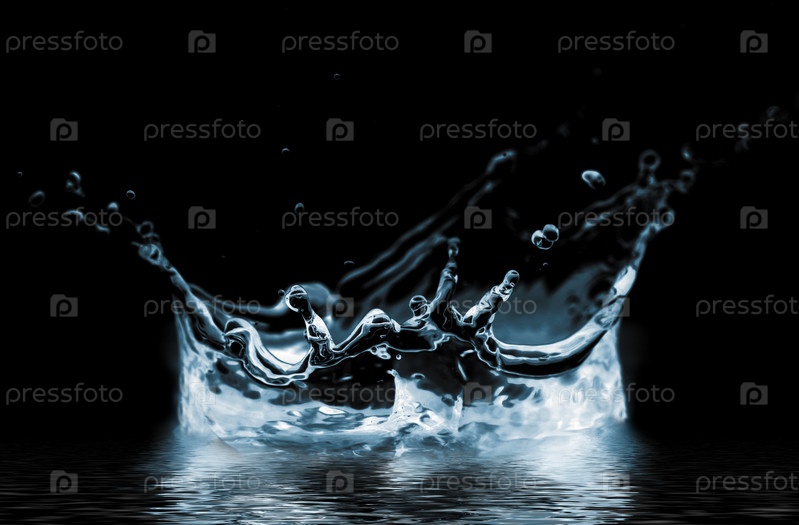 Корона из воды на черном фоне