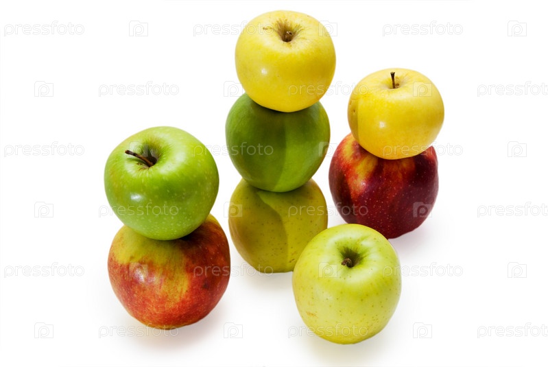 Спелые яблоки на белом фоне