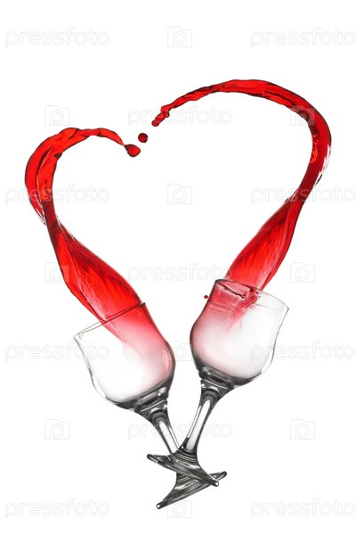 Бокалы и всплеск красного вина в форме сердца