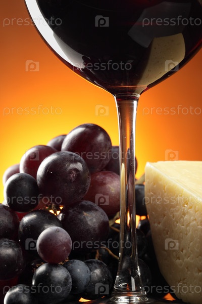 Натюрморт с красным вином, виноградом и сыром