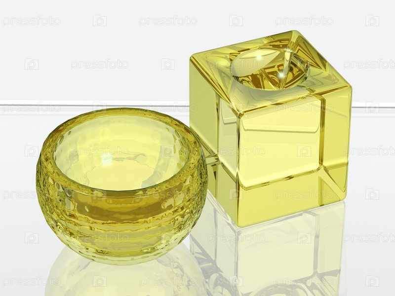 Два стеклянных объекта для спа-салона на белом