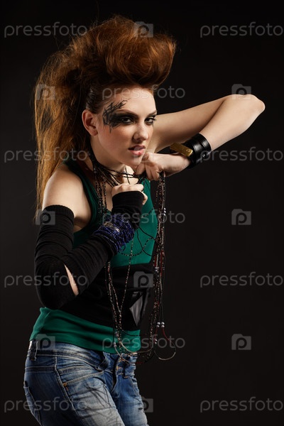 Портрет рыжей девушки-панка на черном фоне