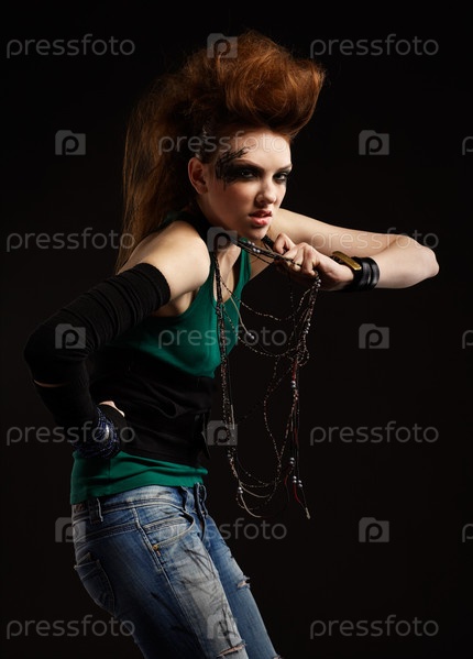 Портрет рыжей девушки-панка на черном фоне