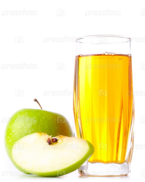 Стакан сока и зеленые яблоки