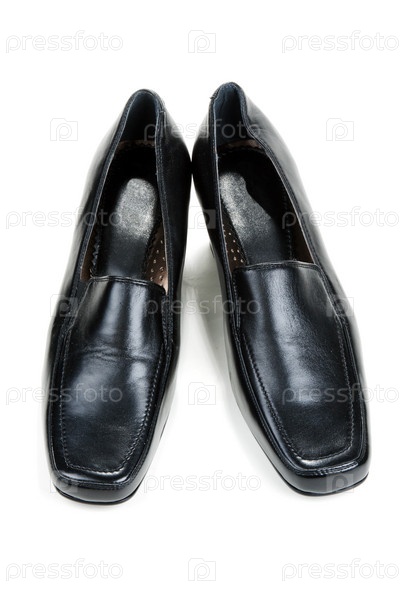 Черные кожаные женские туфли на белом фоне