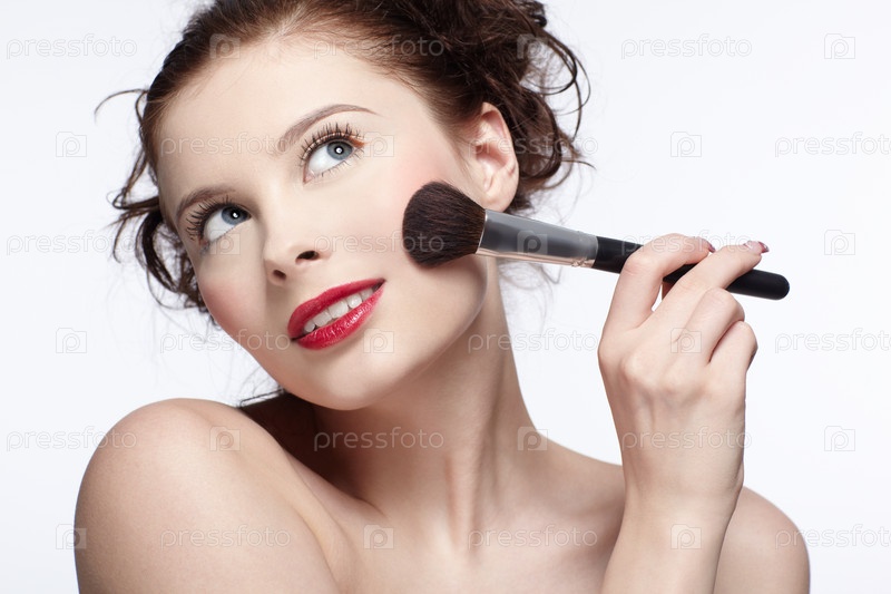 Красивая брюнетка делает макияж